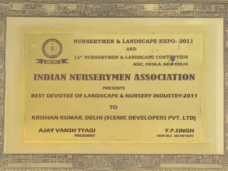 Incredibly grateful and honored to have been awarded the esteemed title of “Best Devotee of the Landscape & Nursery Industry 2011” by the Indian Nurseryman Association. This recognition serves as a testament to my unwavering dedication and passion for the industry. We are truly humbled to be acknowledged for our contribution.